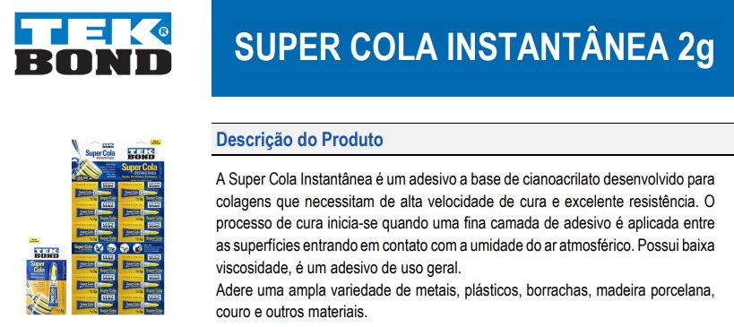 Peso: 2g, Marca: Tekbond, Indicado para: madeira, plástico, borracha e outros materiais, Uso: doméstico e artesanal