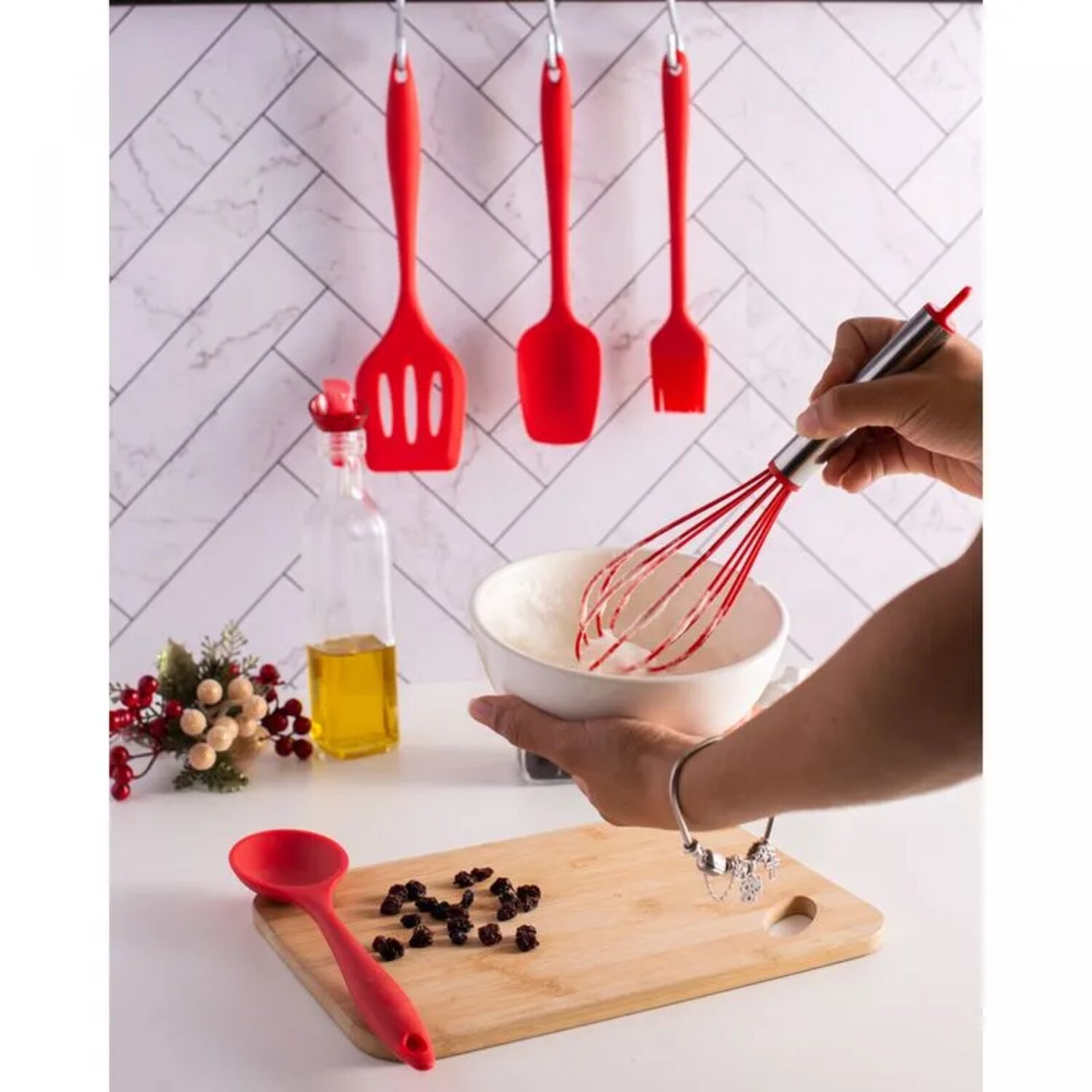 1 Batedor de Ovos Silicone com Cabo Inox Lyor Vermelho