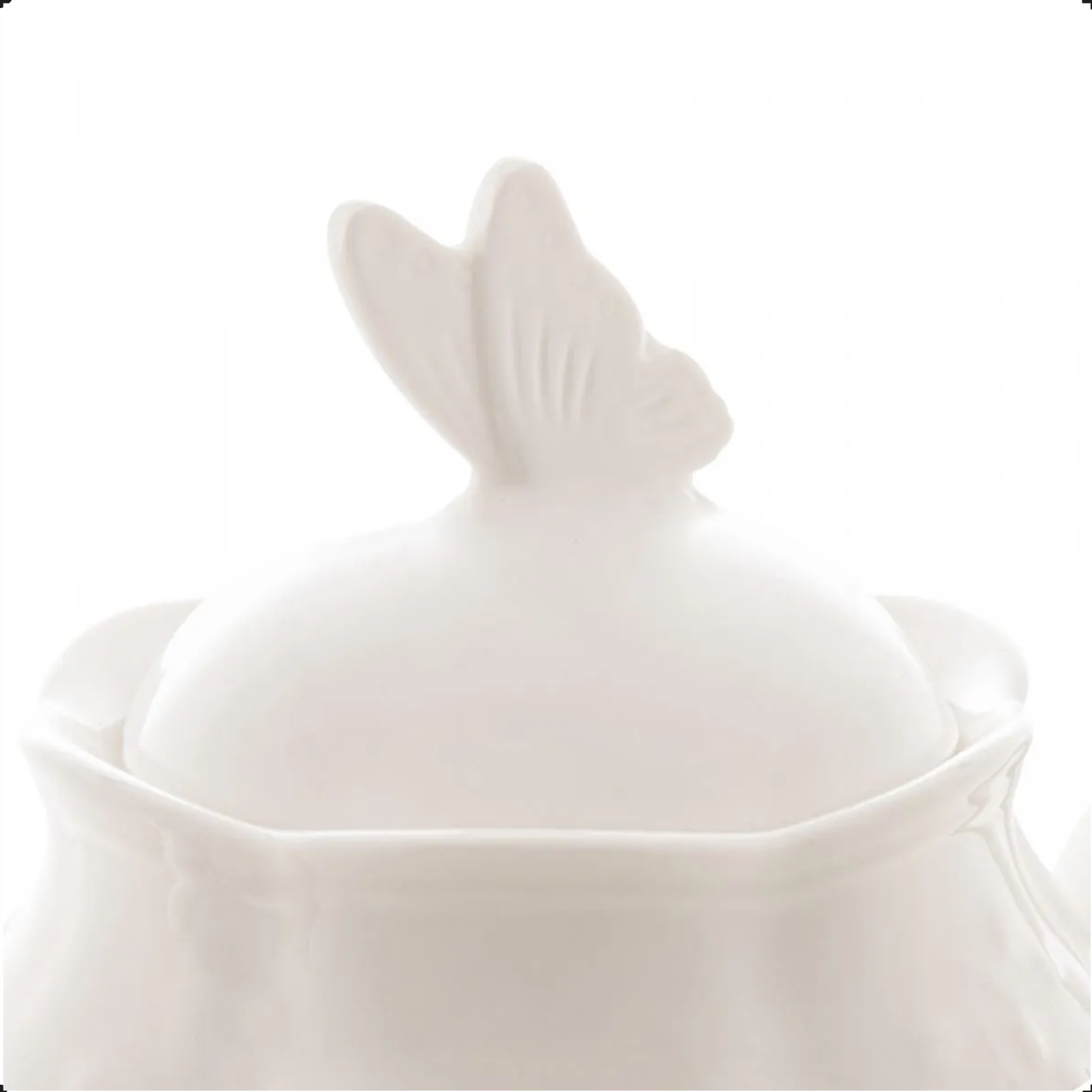 Capacidade: 1,25L; Material: Porcelana; Marca: Lyor; Modelo: New Butterfly; Cor: Branco; Dimensões: 20cm x 15cm x 10cm.