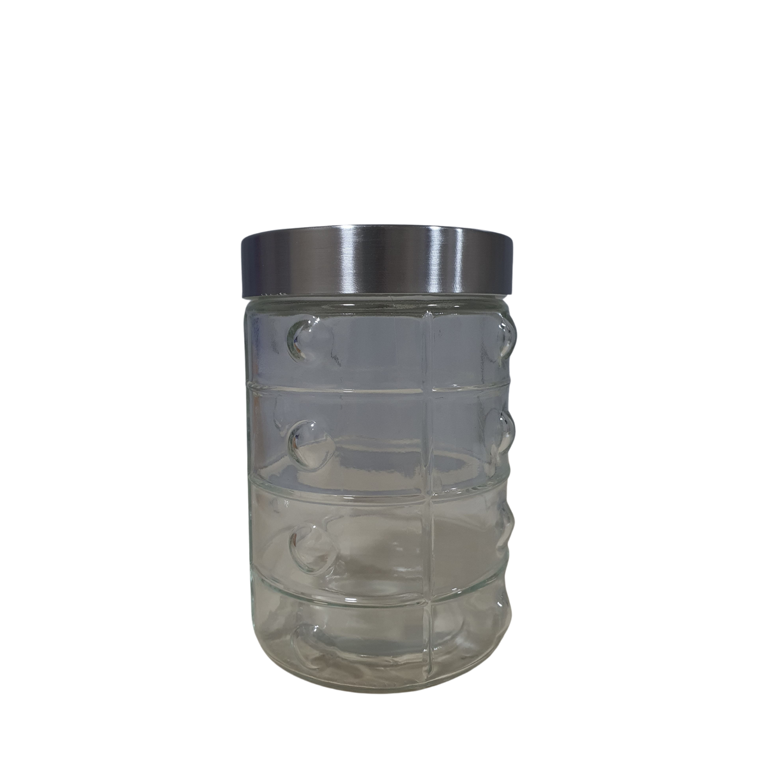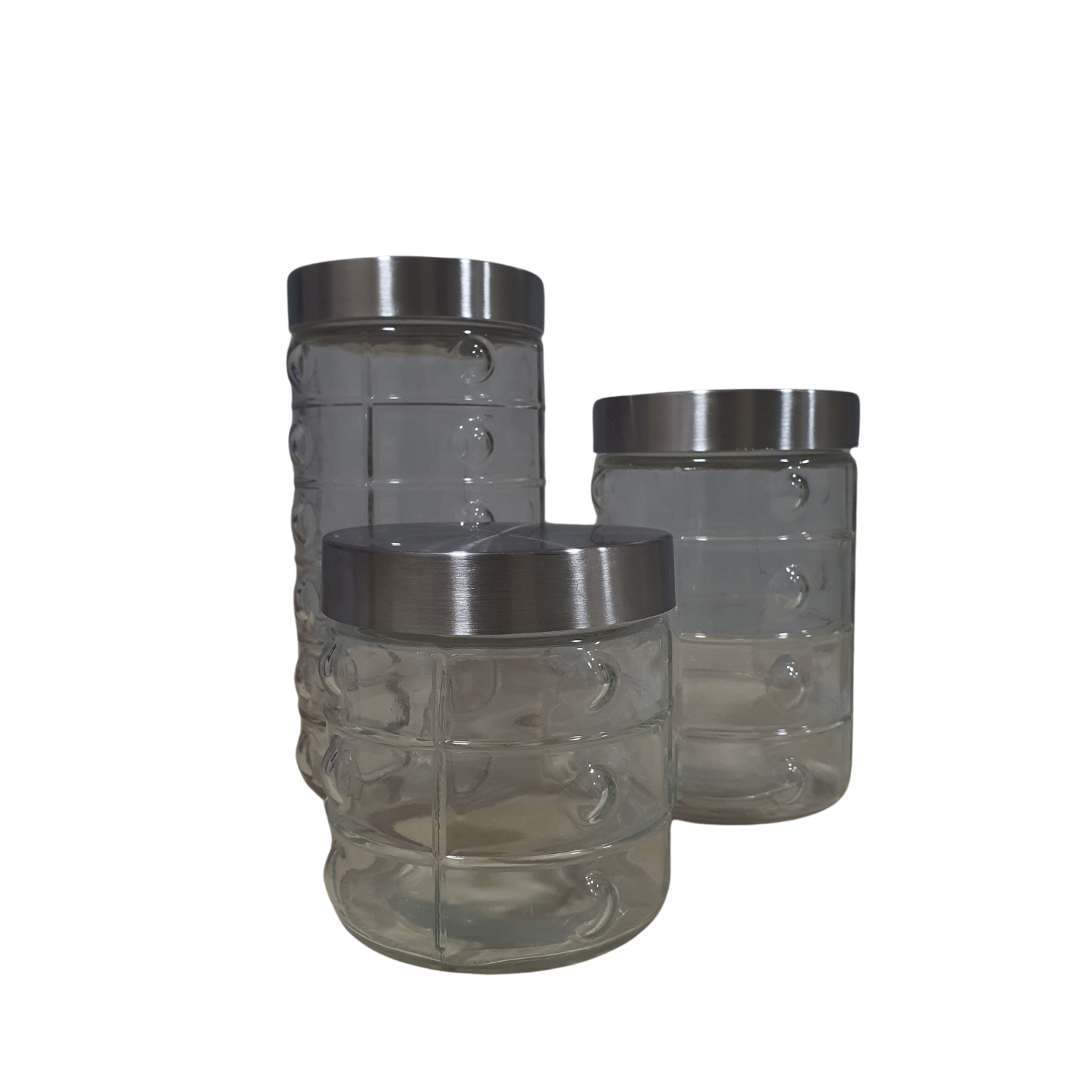 3 potes de vidro redondo nos tamanhos: 500ml, 750ml e 1000ml.