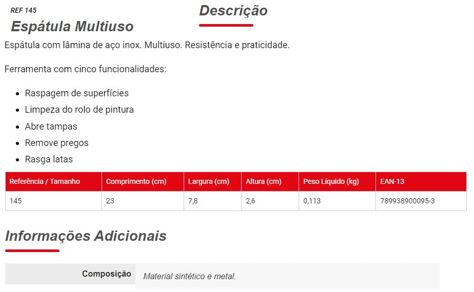 1 Espátula de Aço Inox Multiuso 145 Condor