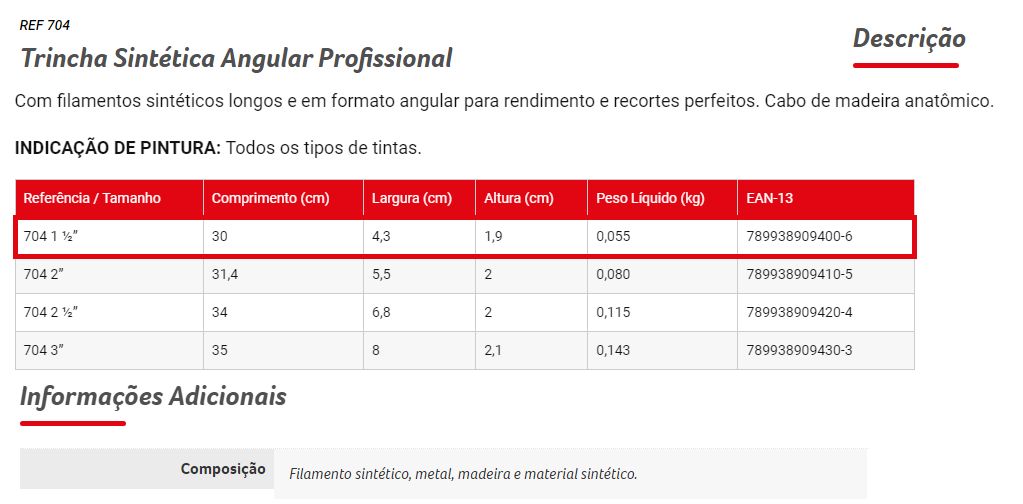 Marca: CONDOR, Tipo: Trincha Angular, Modelo: 704, Tamanho: 1.1/2 polegadas, Ideal para: Pintura e artesanato.