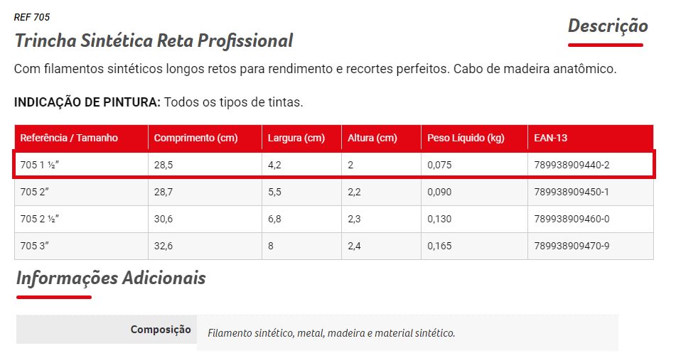 Traga precisão e facilidade para suas pinturas com a Trincha Reta 705 1.1/2 Condor.