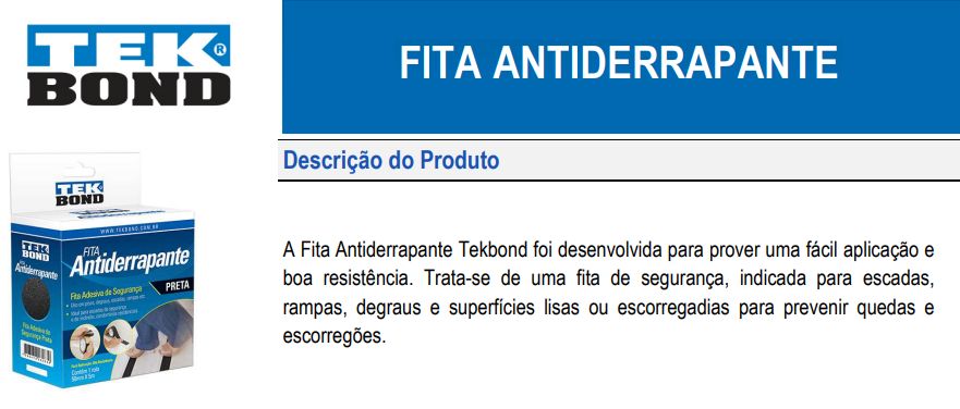 Dimensões: 50mm de largura x 5m de comprimento. Cor: Preta. Marca: Tekbond. Material antiderrapante de alta qualidade.