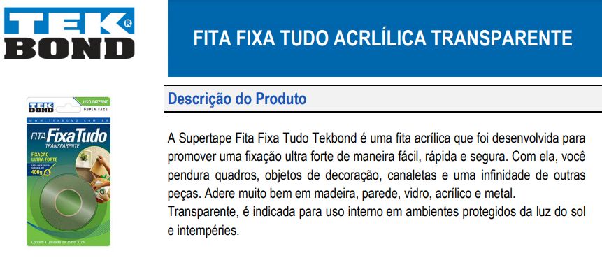 Fixe seus projetos com segurança e praticidade usando a Fita Dupla Face Interno Tekbond.
