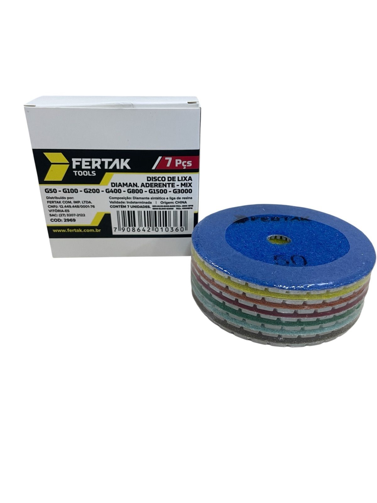 Kit Disco De Lixa Diamantado C/ Velcro MIX C/ 7Pc - 125mm G50 G100 G200 G400 G800 G1500 G3000 Fertak