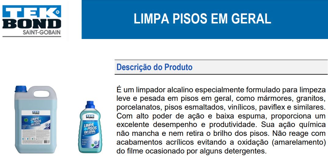 Tenha seus pisos limpos e brilhantes com o poderoso Limpa Pisos Tekbond 1L!