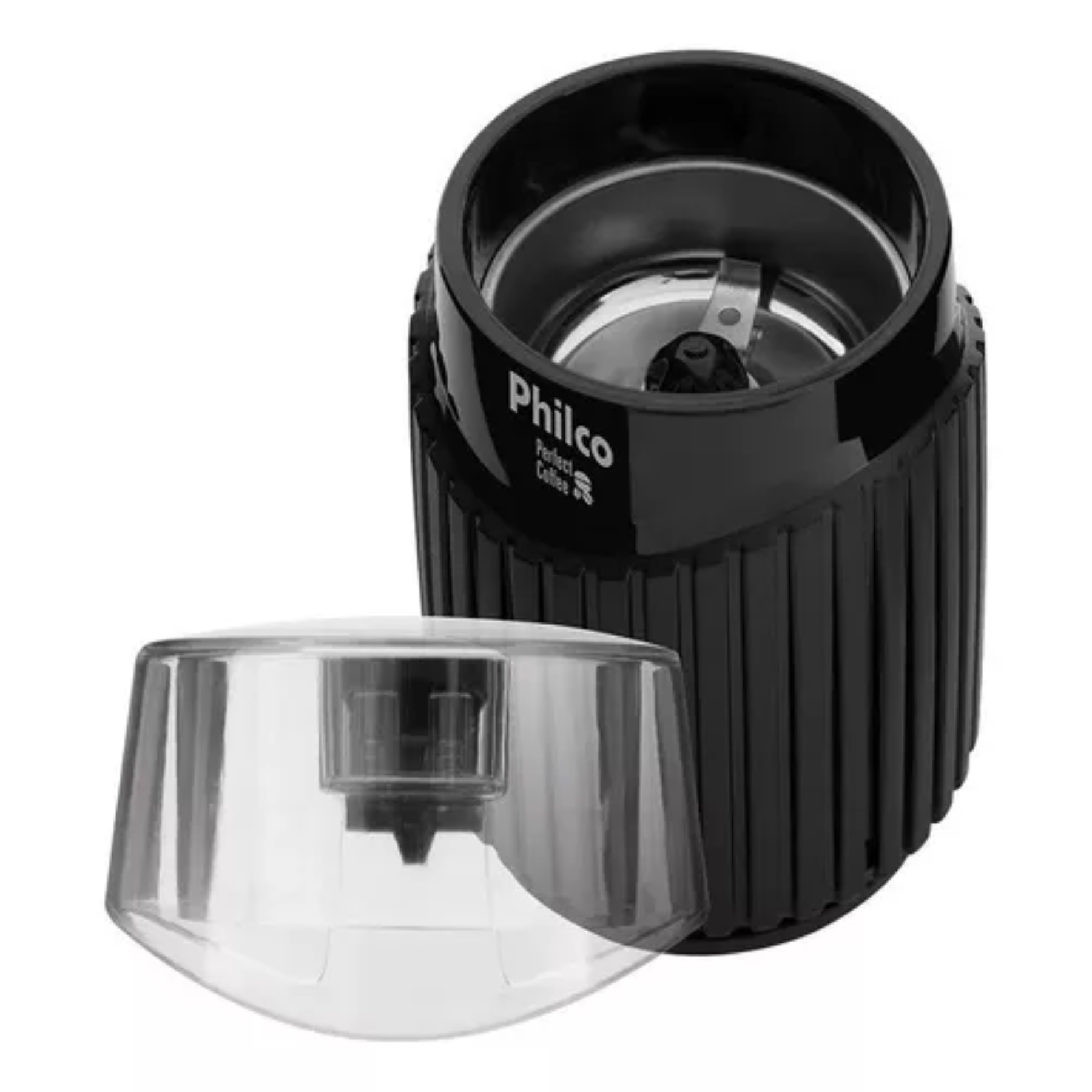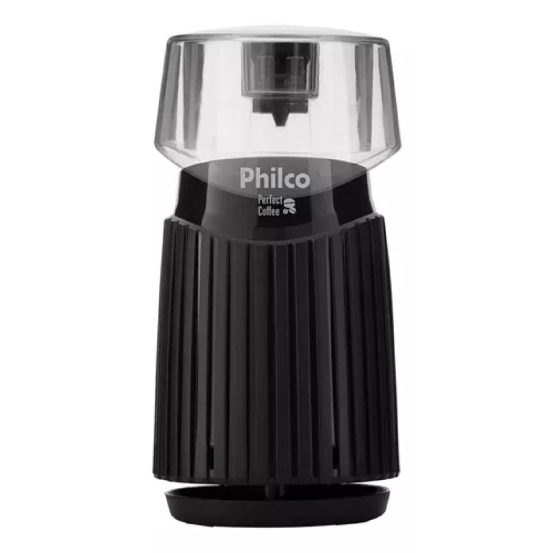 Marca: Philco; Modelo: Perfect Coffe 53901040; Voltagem: 127V; Material: Aço inoxidável; Cor: Preto; Capacidade: 50g de café em grãos; Funções: Ajuste de moagem; Dimensões (LxAxP): 15 x 25 x 10 cm.