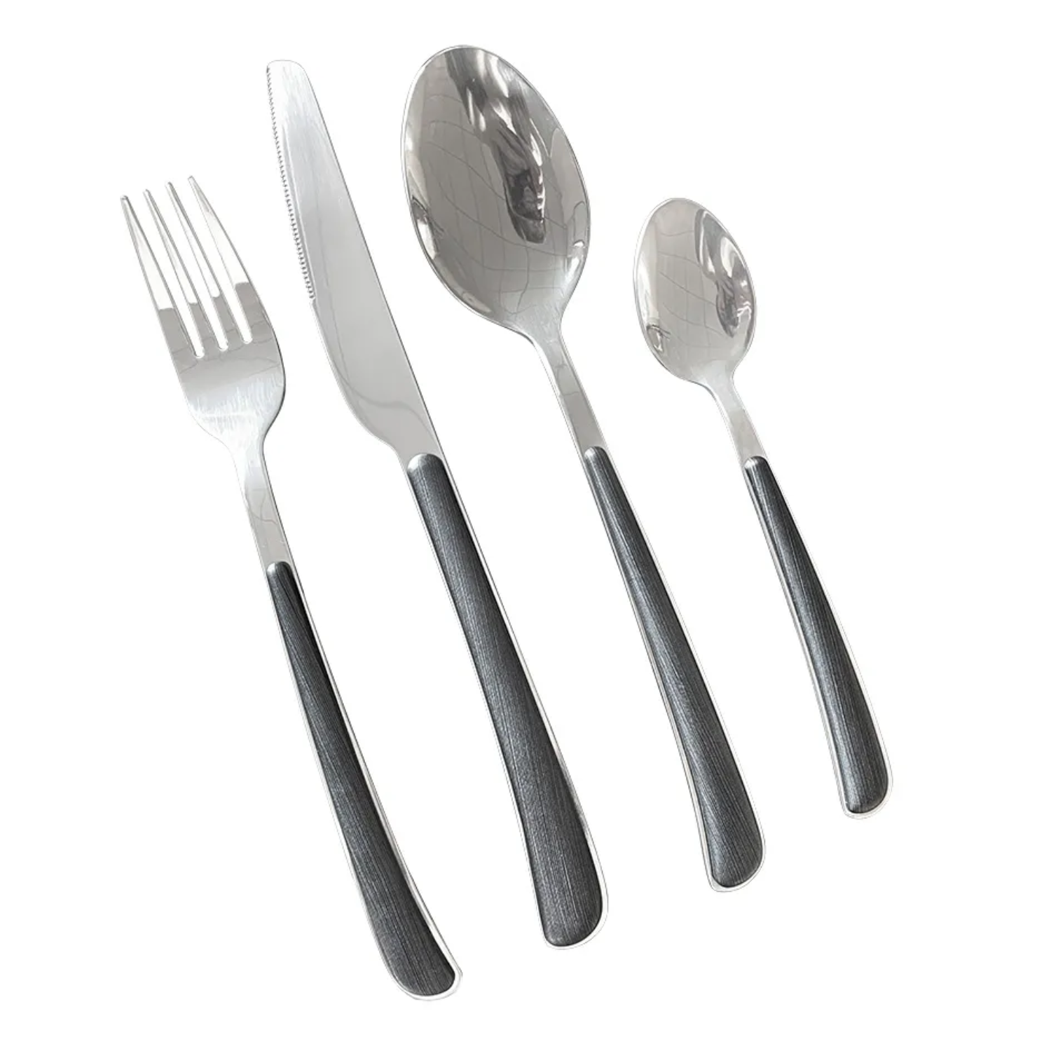 1 Conjunto de 24 Talheres de Metal com Cabo Preto.