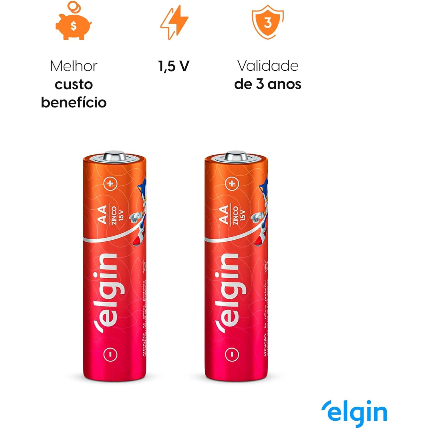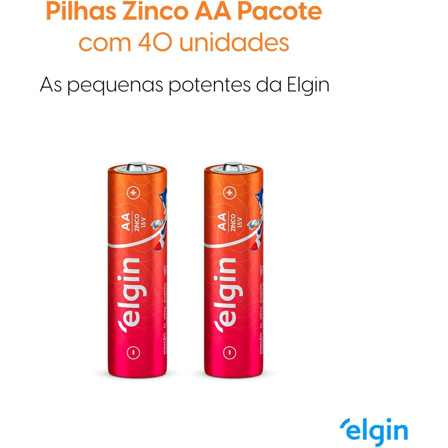 Tipo: Zinco-Carbono AA; Marca: Elgin; Quantidade: 40 unidades; Durabilidade: Longa duração; Ideal para: Controles remotos, brinquedos, relógios, lanternas, entre outros dispositivos.