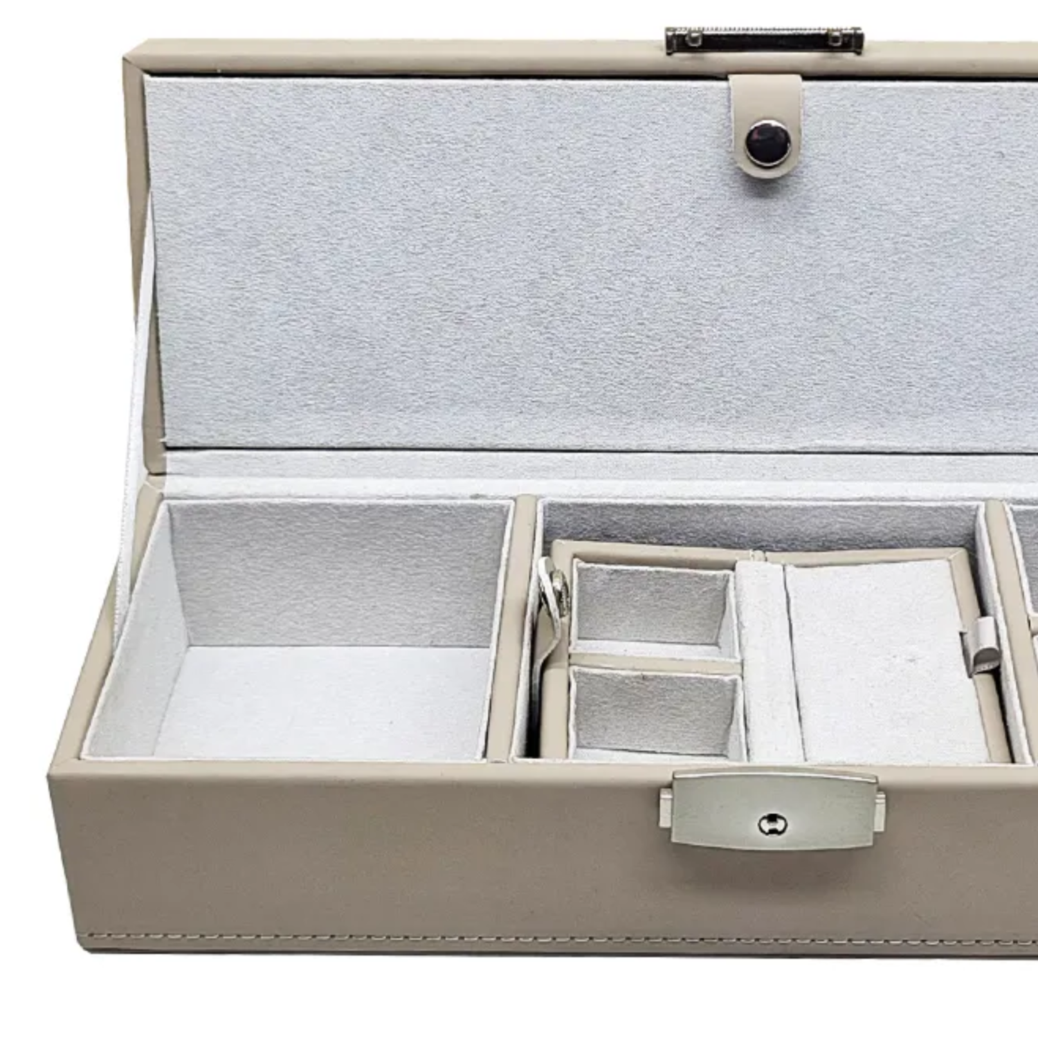 Guarde suas joias com estilo e sofisticação neste belo porta joias de madeira e teci. Ideal para manter suas peças organizadas e protegidas.