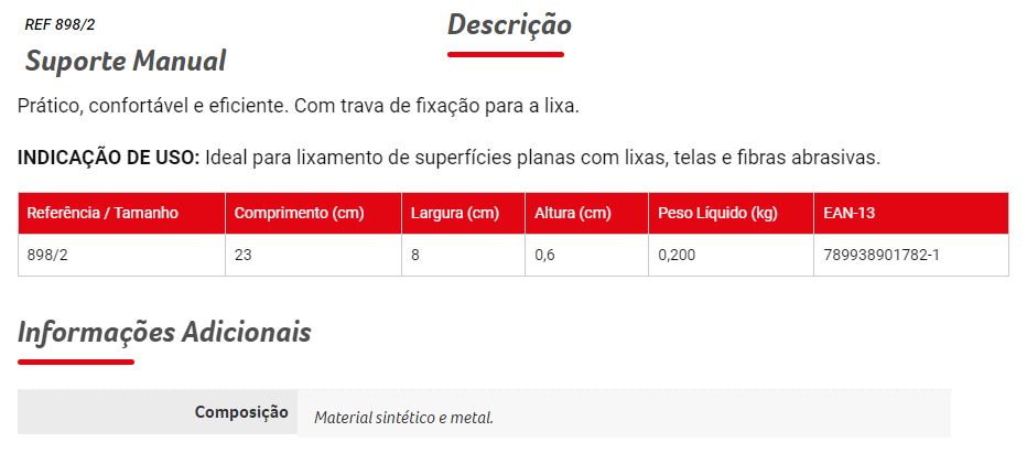 Suporte P/Lixa Manual 898/2 230X80 Condor