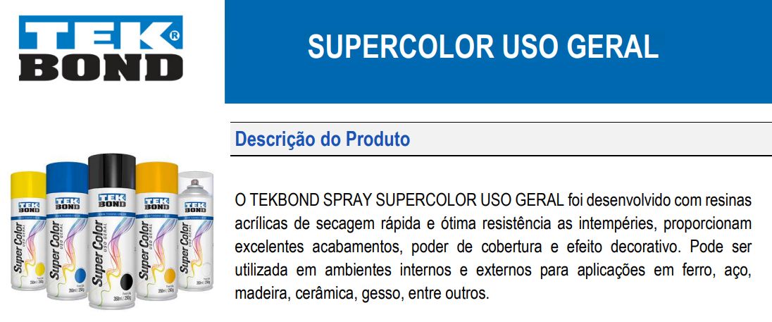 Capacidade: 350ml, Cor: Alumínio, Marca: Tekbond, Fácil aplicação, Secagem rápida, Ideal para objetos metálicos, Resistente às condições climáticas