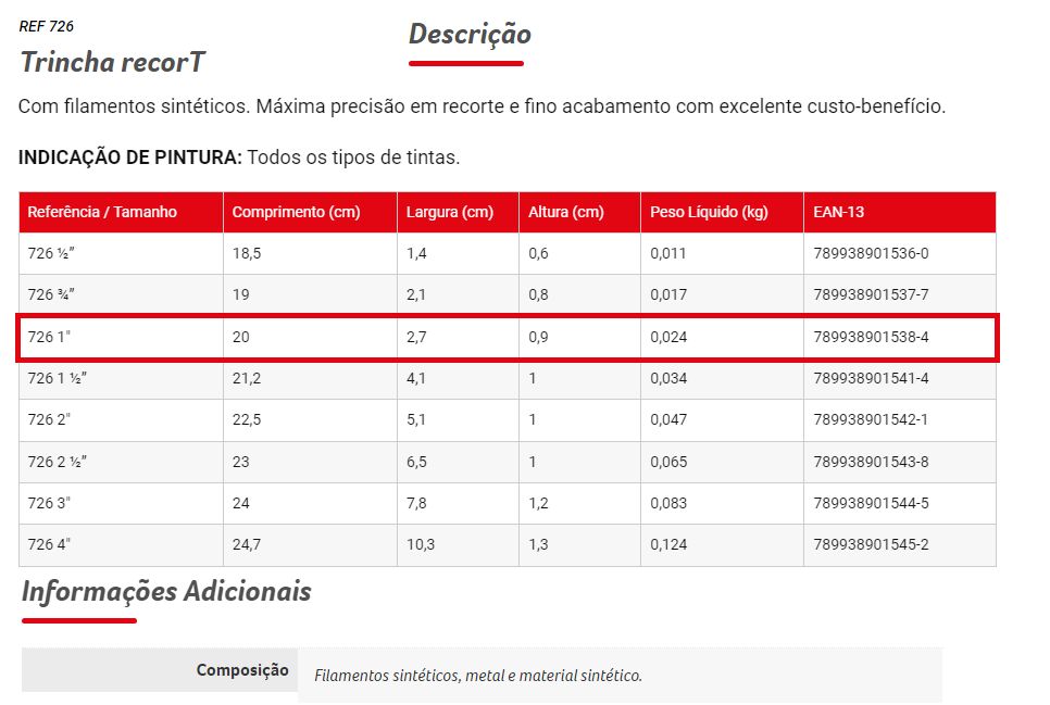 Material: Cerdas sintéticas; Tamanho: 1 polegada; Marca: CONDOR
