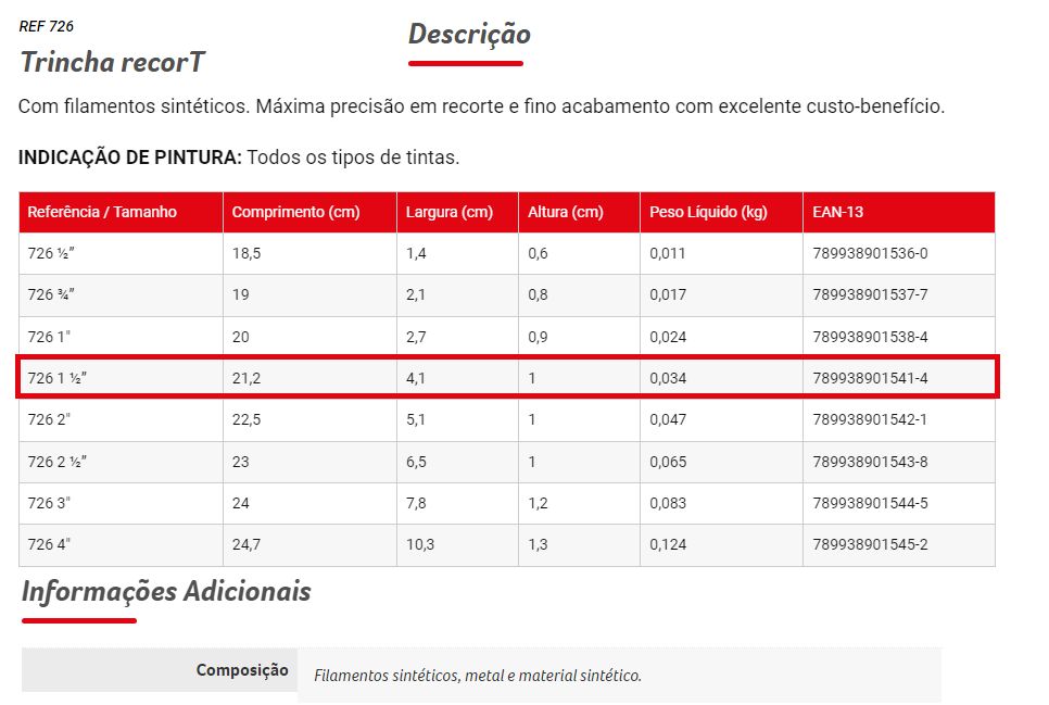 A Trincha 726 1.1/2 Condor é essencial para obter acabamentos perfeitos em suas pinturas.